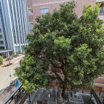 昼間の時間帯でも辺りはどんよりした天気で、スタジオの窓を通して観る神社の楠はまるで白黒の山水画の様でもあります。