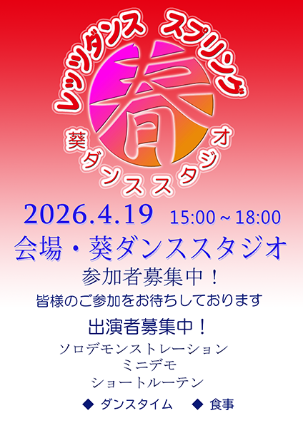 このたび葵ダンススタジオにて、「レッツダンス スプリング」 を開催する運びとなりました。