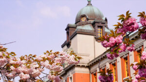 |大正ロマン漂う赤レンガと白い花崗岩のハイカラな建築物